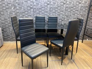 Conjunto de mesa con 6 sillas negro