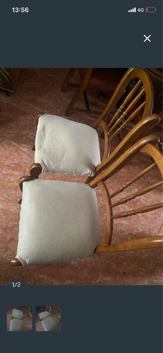 CONJUNTO CUATRO SILLAS Conjunto cuatro sillas antiguas, Madera de haya barnizadas color nogal , En su tapizado original principio siglo XX , No tiene ni a tenido carcoma , Están en muy buenas condiciones, Se encuentra en Mérida , Tenemos posibilidad de transporte no incluido en el precio , Preguntar precio según localidad. PRECIO 6O € #segundamanoeltrastero