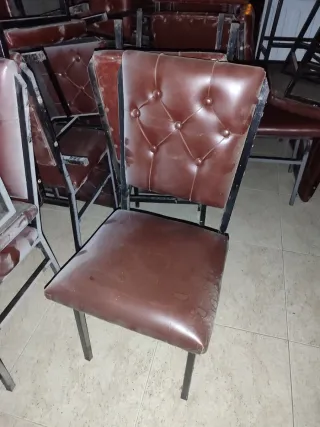 Lote de más de 60 sillas de restaurante. Son de cuero burdeos interesado paso fotos y videos sin compromiso. Silla de hostelería con un diseño clásico y elegante. - Estructura robusta de metal. - Asiento y respaldo tapizados en polipiel. - Respaldo con capitoné y botones. Se vende sueltas o por lotes. Consulta precio