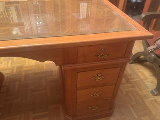 Escritorio de madera con tapa de cristal + sillas