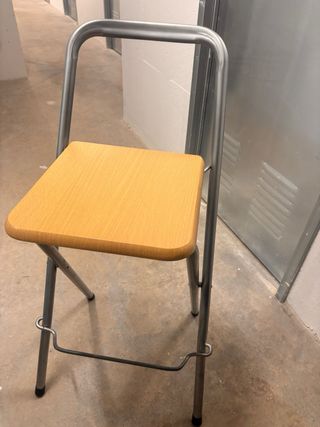 Conjunto de sillas altas, perfectas para cocina o comedor. Su diseño plegable las hace muy prácticas. - Estructura metálica plateada. - Asiento de madera en tono natural.