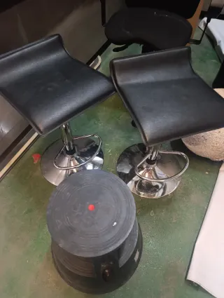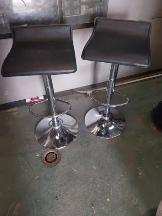 Se venden dos sillas de bar con un diseño moderno y elegante. Son perfectas para complementar tu cocina o barra. - Asiento y respaldo tapizados. - Base redonda y brillante. - Altura ajustable.
