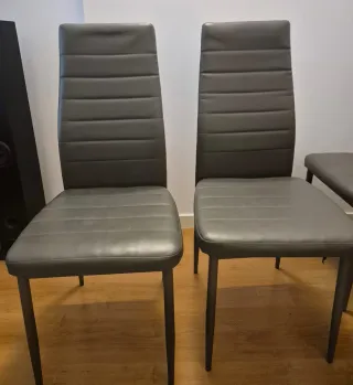 4 Sillas Comedor Piel Sintética Gris