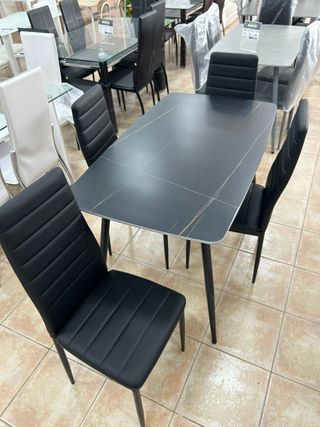 Mesa Comedor Cerámica + 4 Sillas Negras