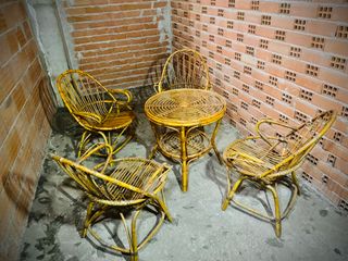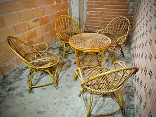 Conjunto mesa y sillas jardín mimbre