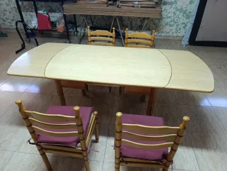 Mesa y 4 sillas de madera