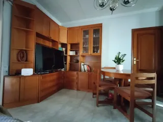 Mueble salón madera + mesa extensible + 5 sillas
