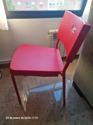 Silla modelo Herman de Ikea en color rojo. Tengo 3 unidades disponibles - Asiento y respaldo de plástico. - Patas metálicas.