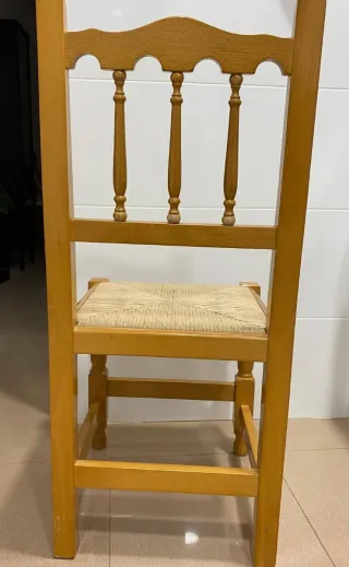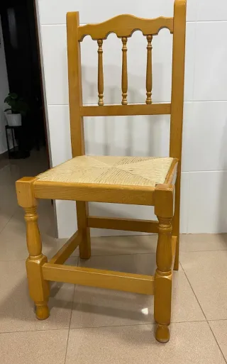 Conjunto de sillas de comedor con estructura de madera y asiento de yute. - Diseño rústico y elegante. - Madera maciza 20€ cada una No hago envios.