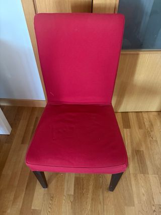 Conjunto de siete sillas de comedor IKEA con fundas roja y blanca - Diseño moderno y elegante. - Tapicería de tela. - Patas oscuras. - Alguna está desfondada