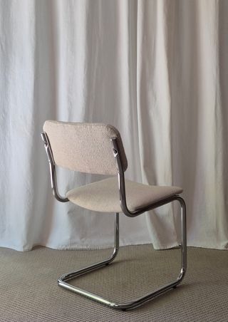 -Elegante silla vintage recuperada inspirada en la silla Cesca. - Fabricación años 70-80. - Estructura tubular acero cromado. - Tapizado profesional en tela de alta calidad color marfil. -Excelente estado. Solo una unidad Ancho 45cm Fondo 44cm Altura asiento 42.5cm Altura total 76.5cm #cesca #diseño #midcentury #restauración #s.XX