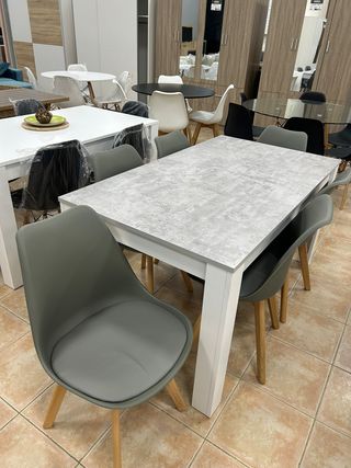 Mesa gris nórdica + 6 sillas acolchadas