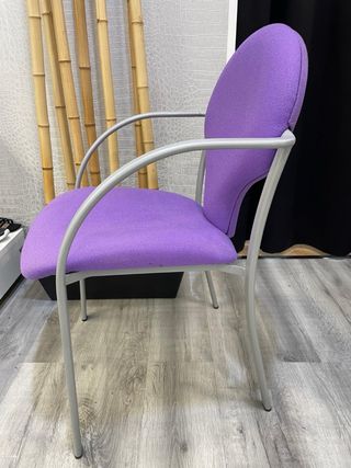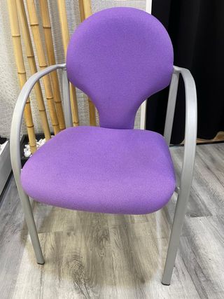 Silla de oficina con un diseño moderno y cómodo. - Tapicería de tela en color morado. - Estructura y patas de metal en acabado plateado. Medidas: alto 87 cm Ancho 54 cm