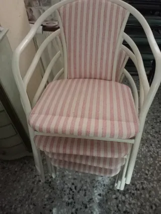 Silla de hierro tapizadas en tela. 15€ la unidad. El conjunto de 6 sillas 75€.