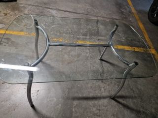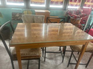Mesa cristal y 4 sillas de aluminio.