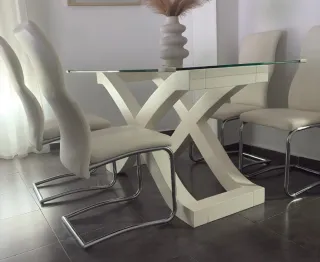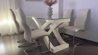 Mesa Comedor Cristal y 4 Sillas Piel