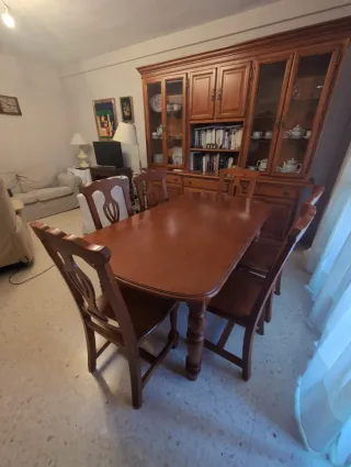 Mesa comedor y 6 sillas madera oscura