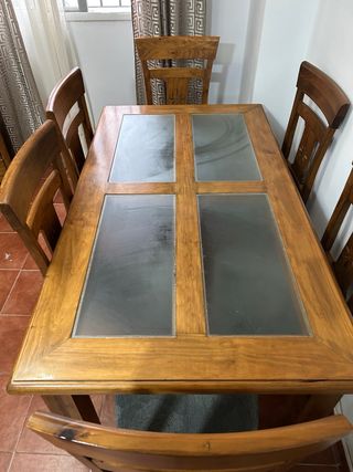 Mesa de comedor madera y cristal con 6 sillas