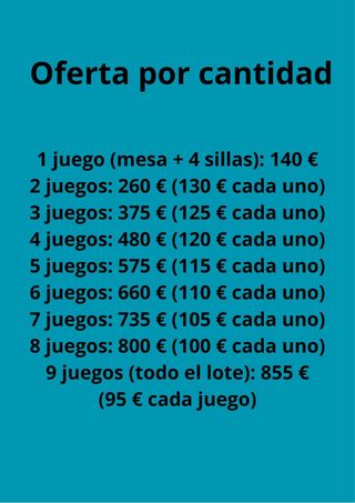 🔹 Mesa medida 140x80cm 🔹Resistente y de gran calidad 💪 🔹 Cuatro sillas incluidas 📦 Producto nuevo 🧾 Entregamos factura 🛡️ 3 años de garantía 🚚 Envío disponible (costo adicional) 💰 Pago contra reembolso disponible ¡Lista para llevar y disfrutar del mejor descanso! 🌙✨ Escríbeme para más información 📩