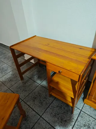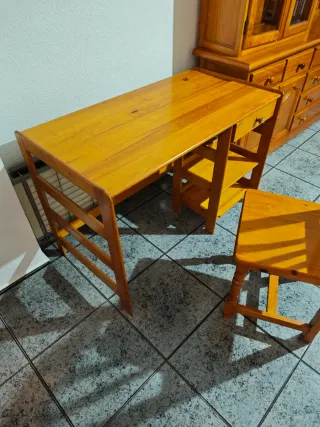 Conjunto de escritorio y silla fabricados en madera. - Diseño clásico y funcional. - Ideal para espacios de estudio o trabajo. Solo venta en persona para que vengan a recogerlo