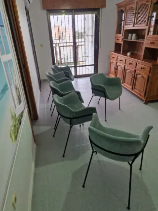 Conjunto de sillas metálicas apilables, ideales para hostelería o eventos. - Diseño moderno y resistente. - Combinación de colores negro,blanco,verde,gris y rojas. 20€ la unidad contacto 627370197