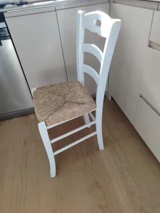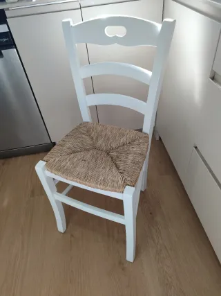 Conjunto de sillas de madera con asiento de anea, perfectas para tu cocina o comedor. - Estructura de madera robusta. - Asiento tejido a mano con fibras naturales.