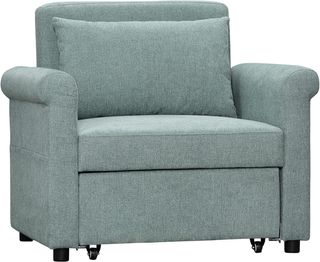 Sillón Cama Individual Con Respaldo Regulable En 4 Posiciones, Tejido Transpirable Efecto Lino Y Asiento Acolchado, 96X84.5X87.5 Cm, Verde