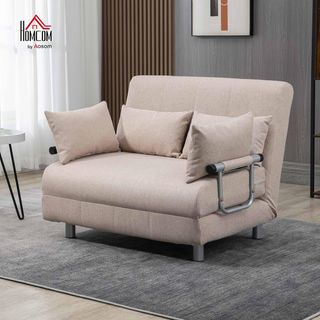 Sofá Cama 2 Plazas 3 en 1 Convertible en Sillón Reclinable con Respaldo Regulable y 4 Cojines Acolchados, 102X82X81 Cm, Beige
