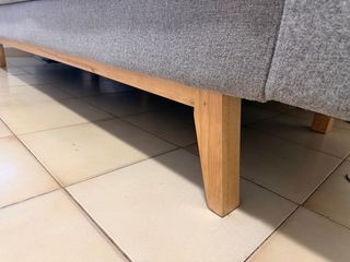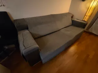 Sofá cama de tela gris. Presenta daños estéticos que no están visibles en las fotos. La funcionalidad no está elafectada. Mas info al interno