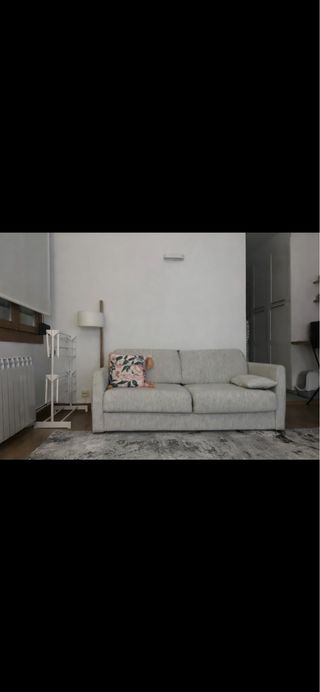 Sofá cama con sistema de apertura italiana En impecable estado. Se abre con una mano en un movimiento de 15 segundos sin tener que quitar cojines ni nada ya que todos los elementos están ingeniosamente unidos a la estructura movil Ha estado en una estancia auxiliar y se ha usado de manera absolutamente puntual,esta impecable. El diseño es atemporal,contemporaneo y el tejido es precioso,super limpio.no pasa de moda.siempre actual. El sofa mide 210 de largoy 92 de fondo.la cama es de 135.