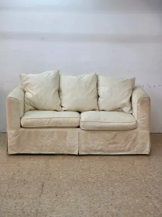 Sofá cama de dos plazas en buen estado. Su diseño moderno y su comodidad lo hacen ideal para cualquier hogar. - Medidas: 180x90 cm. - Tapicería de tela.