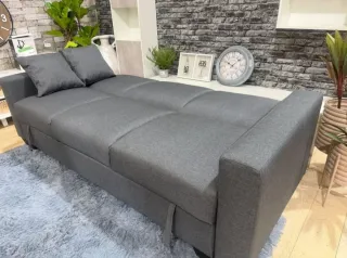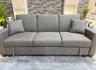 Sofá cama de tela en color gris, ideal para optimizar espacios. - Diseño moderno y funcional. - Robusto - Patas metalicas - Tapicería suave al tacto. Trato y recogida en Elche
