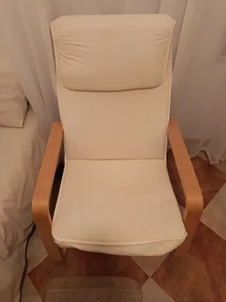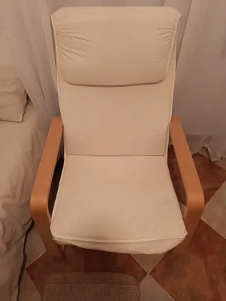 Sillón Poäng de Ikea con cojín Hillared en color beige. Un clásico del diseño escandinavo. - Estructura de madera curvada. - Cojín suave y confortable.