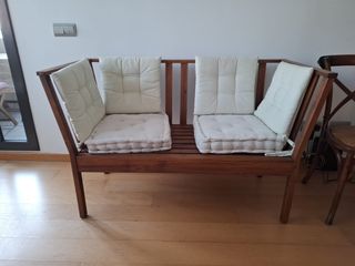 Conjunto de dos sillones de madera maciza, perfectos para interior como exterior. Silla - Butaca Jardín - Terraza Modelo descatologado de Ikea. Estructura robusta y resistente.