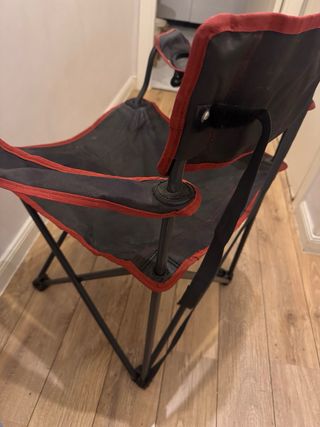 Silla plegable roja , ideal para picnic,playa,piscina,rio Ocupa poco y pesa aun menos Soporta hasta 100kg de peso Es bastante ligera y la tela es lavable.