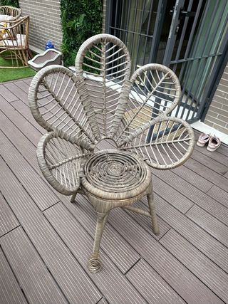 Este sillón de exterior combina un diseño moderno con materiales resistentes. Ideal para disfrutar de tu terraza o balcón. - Estructura tejida en color gris. - Cojines confortables en tela. - Patas de madera robusta. En perfecto estado,nos costó 500€.Lo vendemos por mudanza. PRECIO NO NEGOCIABLE.Nos mudamos está semana,ÚLTIMO día de recogida VIERNES 20/03.