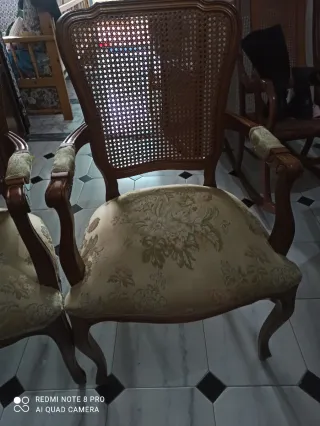 Conjunto de dos sillones con estructura de madera y asiento de mimbre. - Diseño clásico y elegante. - Asientos cómodos y resistentes. - Perfectos para cualquier estancia.