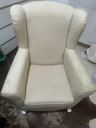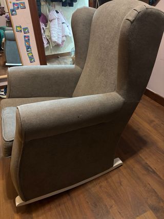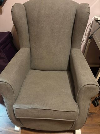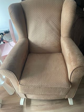 Sillon mecedora beige perfecto para relajarse - Medidas del sillón: 91 cm (alto) x 55 cm (ancho) x 125 cm (largo). - Medidas del reposapiés: 33 cm (alto) x 67 cm (ancho) x 50 cm (profundidad). - Altura del asiento: 30 cm. - Grosor del brazo: 6 cm. - Altura del respaldo: 73 cm. - Altura del cojín del reposacabezas: 25 cm. - Capacidad Máxima de Carga Estática: 150 kg Usado durante 4 meses para la lactancia de mi bebé. Siempre cubierto por una funda por lo que se encuentra como nuevo.