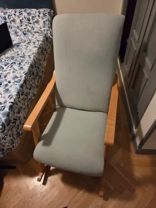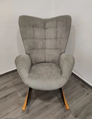 ¡Máximo confort! 🛋️ Vendo precioso sillón balancín de diseño moderno y envolvente. Ideal como sillón de lactancia o para crear un rincón de lectura relajante. Su estructura ergonómica ofrece un balanceo suave y muy agradable. 💤 Estado: Muy bien cuidado. El tapizado es suave, acolchado y se encuentra en buenas condiciones. 🧶 La base de madera es robusta, estable y permite un movimiento fluido sin ruidos. Un mueble funcional que combina estilo y bienestar, perfecto para cualquier salón o dormitorio infantil. 🏠 ¡Una oportunidad para descansar como mereces! 🤝