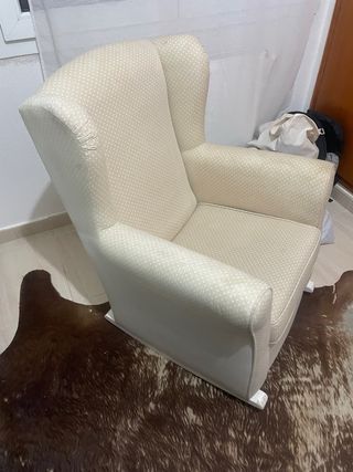 Este sillón balancín es ideal para crear un espacio acogedor. - Tapizado en tela de espiga. - Base de madera para balanceo. Lo compré para la lactancia de mi bebe y no lo hemos utilizado. Está como nuevo como se puede apreciar en las fotografías. Las patas venían en madera oscura y las pintamos en blancas.