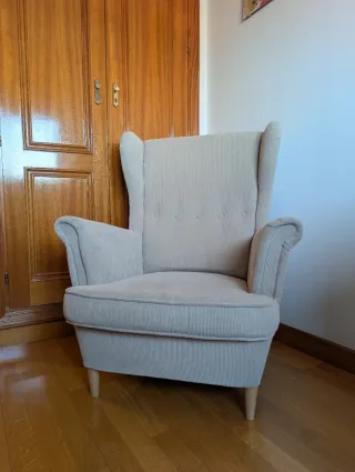 Ahórrate 100€!! Sillón orejero STRANDMON de IKEA en color Kelinge beige es un clásico del confort. Su diseño alto y envolvente te invita a relajarte. - Tapicería de tela. - Patas de madera. Nosotros lo compramos antes d ser papás, es súper cómodo para momentos de lactancia, biberón, siestas de los bebés... Nuevo cuesta 279, por lo que es un ahorro de 100€. Os invitamos a leer nuestras reviews para ver qué somos personas serias y honestas.