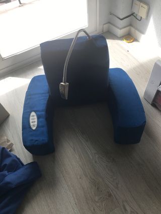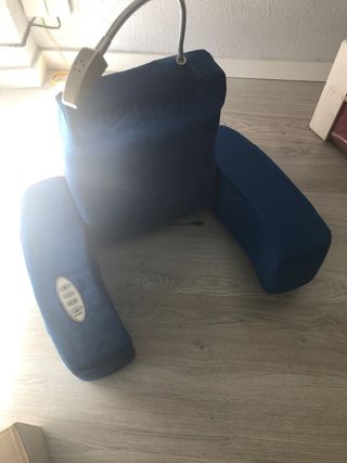 Tiene funcion masaje y función calor y lámpara para leer. Es ideal para aquellas personas que por algún motivo están en cama de forma temporal o como reposabrazos para sofás con chaiselongue o sofás y camas amplias . Tiene bolsillo lateral para guardar el mando de la televisión o lo que se quiera.