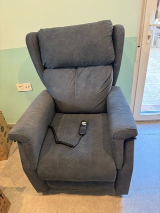 Sillón reclinable eléctrico con función levantapersonas. Tiene un pequeño agujerito en el asiento, que se puede apreciar en la última fotografia, pero funciona muy bien. Por ese motivo se ofrece a 50€. Con un cojín planito para que no se vea el agujerito va genial. - Mecanismo eléctrico para reclinar y elevar. - Diseño moderno y confortable. Hay otro igual pero con garantía hasta febrero de 2027 y que se vende por 200€ La pareja de sillones podría venderse en 220€ RETIRADA DE CUALQUIERA DE LOS SILLONES ANTES DEL 28 DE FEBRERO