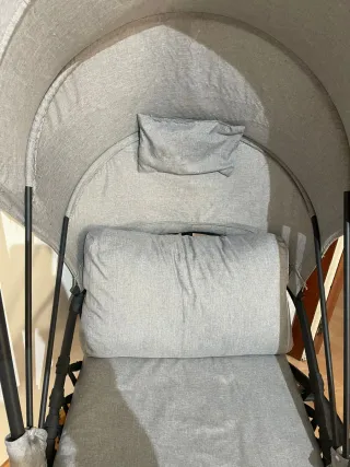 Cómoda silla colgante con estructura metálica. - Cojín incluido para mayor confort. - Toldo integrado para protección solar. Marca generica