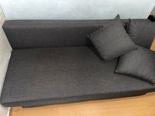 Sofá cama de Ikea en color gris, con espacio de almacenamiento. - Tapicería de tela. - Incluye canapé para guardar cosas.