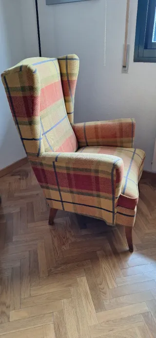 Sillón orejero en muy buen estado. Muy cómodo. Incluye reposapiés y cojín a juego.
