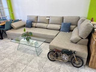 Sofá chaise longue de tela en color beige en perfecto estado. Usado de forma esporádica - Diseño moderno y funcional. - Tapicería suave al tacto. - Estructura robusta. - Almacenaje en el chaise lounge. - Asientos extensibles. - Cabecero reclinable en las 3 piezas. - Chaise lounge: 175x115cm A recoger Precio negociable (precio de venta nuevo 3000€)