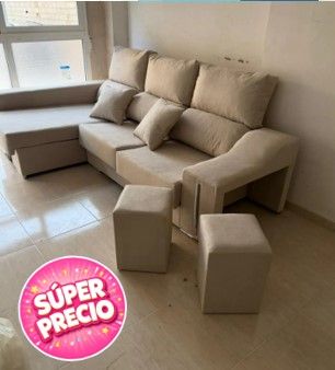 Cómodo sofá chaise longue de tela, ideal para tu salón. Incluye dos pufs a juego. - Diseño modular. - Tapicería suave al tacto. - Reposacabezas reclinables. ✅PAGO CONTRAREEMBOLSO💸 📲641543021 MIRIAM 📲📲PREGUNTAR SIN COMPROMISO 👷♀️PROFESIONALES EN EL SECTOR👷♀️ 3 AÑOS DE GARANTIA ❗❗❗