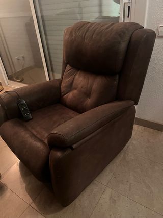 Este sofá eléctrico cuenta con función de masaje para mayor comodidad reclinable y elebable para personas con dificultad con calor incorporado en la zona lumbar - Tapizado en polipiel. - Mando a distancia incluido para controlar las funciones. - tapicería un poco desgastada por las esquinas de detrás a causa del cambiarlo de habitación.