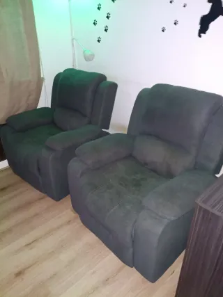 Se venden dos sillones relax reclinables. Precio de la pareja, te llevas los dos sillones por ese precio - Tapicería de tela. - Color gris. - Mecanismo reclinable. LAS MEDIDAS ESTAN EN LAS FOTOS. Para venir a buscarlos a mí piso, no ofertas absurdas, tienen menos de un año de uso y podéis ver qué el precio está muy bien, muchas gracias